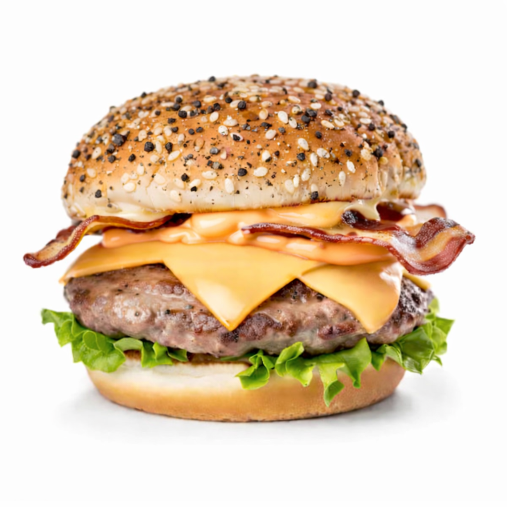 Pistolet met hamburger en spek